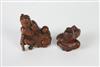 TWO JAPANESE CARVED BOXWOOD NETSUKES. 19th century. One of seated boy pointing at nose; other, father with boy pointing at damaged eye; both signed, one on inlaid ivory panel. - Taller, H: 2 1/4 in.Estimate $250-350