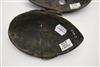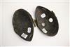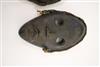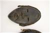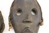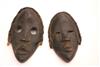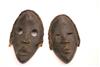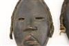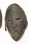 TWO LIBERIAN DAN PEOPLES PASSPORT MASKS. Mid-20th century or earlier. Two patinated Dan face wooden masks with fiber hair from Ivory Coast. Both show some sign of usage. - Height Largest: 6 inches.Estimate $100-150