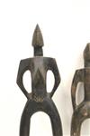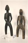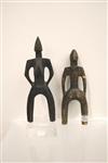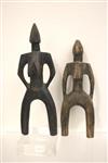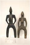 TWO MOSSI TRIBE BURKINA FASO WOODEN SLINGSHOTS, Early-to-mid 20th century. Wooden patinated hand carved Mossi Tribe slingshots. One sling shoot is presented on a stand. - Height: 8 inches.Estimate $100-120