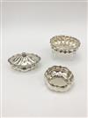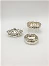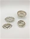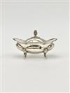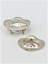 TWO SIGNED BUCCELLATI STERLING SILVER SMALL MOLDED CIRCULAR DISHES, AND TWO LIFT-TOP FOOTED DISHES. Dishes have shaped oval outlines, one with acorn finial. Largest dish, D: 5 1/2 in. Total wt. 22.8 troy oz. - l. Property from the Estate of Erich G. Holzapfel, Washington, DC Estimate $500-700