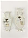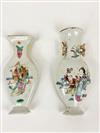 TWO SIMILAR CHINESE FAMILLE ROSE PORCELAIN VASE-FORM WALL APPLIQUES. Decoration of figures in landscapes. - Taller, H: 6 3/8".Estimate $100-150