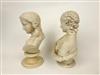 TWO VICTORIAN BISQUE BUSTS OF MAIDENS. One impressed "Malempre"; other impressed "Delpech (Red)/Art Union of London. 1855" H: 13 in.Estimate $150-250