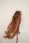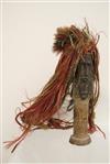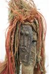 UPPER VOLTA AFRICAN FETISH BOBO-FING BAMBARA ORNAMENT, Mid-to-early 20th century. Fetish doll-like (helmet?) ornament with metal face coverings and multicolored rope cloth. . There are indication of usage and it shows age. - Height: 10.5 inches. Estimate $180-280
