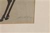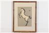 URUSHIBARA MOKUCHU (1888-1953). WHITE HORSE, Japanese Woodblock Horse Facing Left; signed in pencil with red seal lower right corner recto; matted and framed. Unexamined out of frame. - 13 1/4 x 9 1/5" Frame: 21" x 16" Estimate $100-150