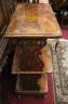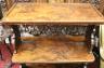 VICTORIAN ROSEWOOD TWO-SHELF STAND mid 19th century Rectangular top with rounded front corners over conforming shelf and base with full-width drawer; shaped pierced side supports. H: 41 1/4 in. W: 30 in. D: 16 1/2 in. $150-250