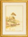 WALTER STUART LLOYD (British, 1875-1929). Fishermen near Village, Watercolor and gouche. Signed lower right corner. Framed. Not examined out of frame. - 28" x 19"; Frame 41" x 31"Estimate $400-600