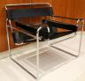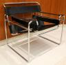 WASSILY STYLE MODERN CHROME AND BLACK LEATHER ARMCHAIR