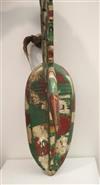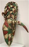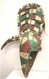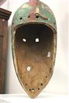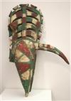 WOODEN CARVED AND PAINTED BOBO BURKINA FASO MASK , Early-to-mid 20th Century. Impressive patinated wooden mask from Bobo People, Burkina Faso. Helmet mask has a large Beak protruding from forehead with full crest on top of head. Short piece of rope tied at mid-back of crest. With signs of usage and handling. - Height: 34". Estimate $1,000-1,200